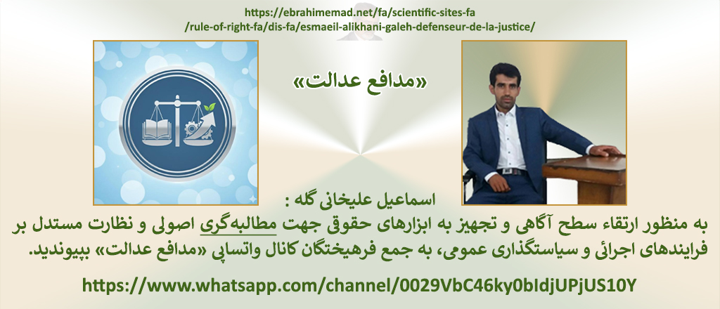 در ارتباط با مباحث «عدالت» با آقای اسماعیل علیخانی گله، فرهیخته حقوقی، وکیل محترم دادگستری، مدافع حقوق ملتها، مدیر کانال واتساپی «مدافع عدالت» در راستای فرایند توسعه حقوقی پایدار
