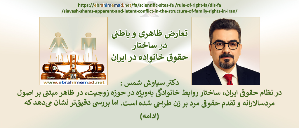 در ارتباط با تعارضات ظاهری و باطنی در ساختار حقوق خانواده در ایران با آقای دکتر سیاوش شمس، فرهیخته حقوقی، قاضی سابق دادگستری، کارشناس بازرگانی بین الملل، عضوافتخاری اتاق بازرگانی ایران و آفریقا، ایران و ویتنام در راستای فرایند توسعه حقوقی پایدار